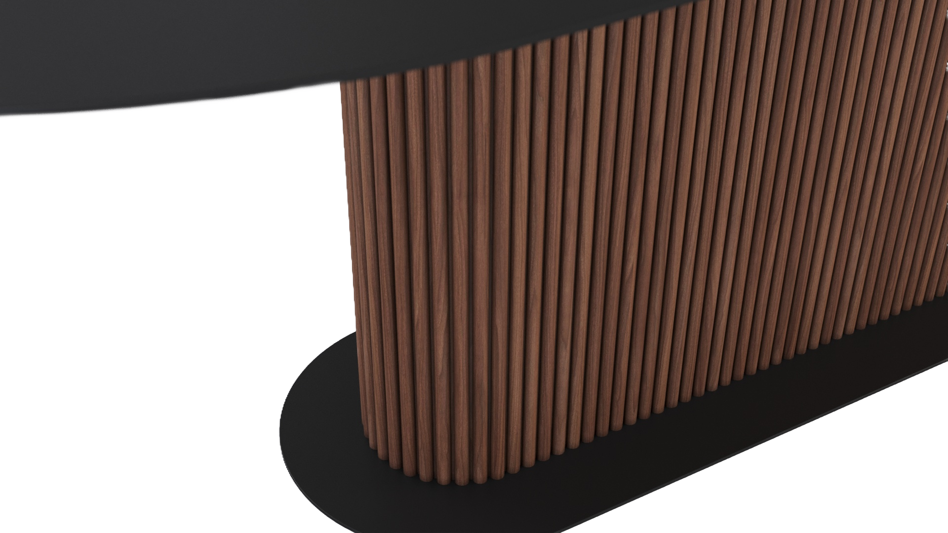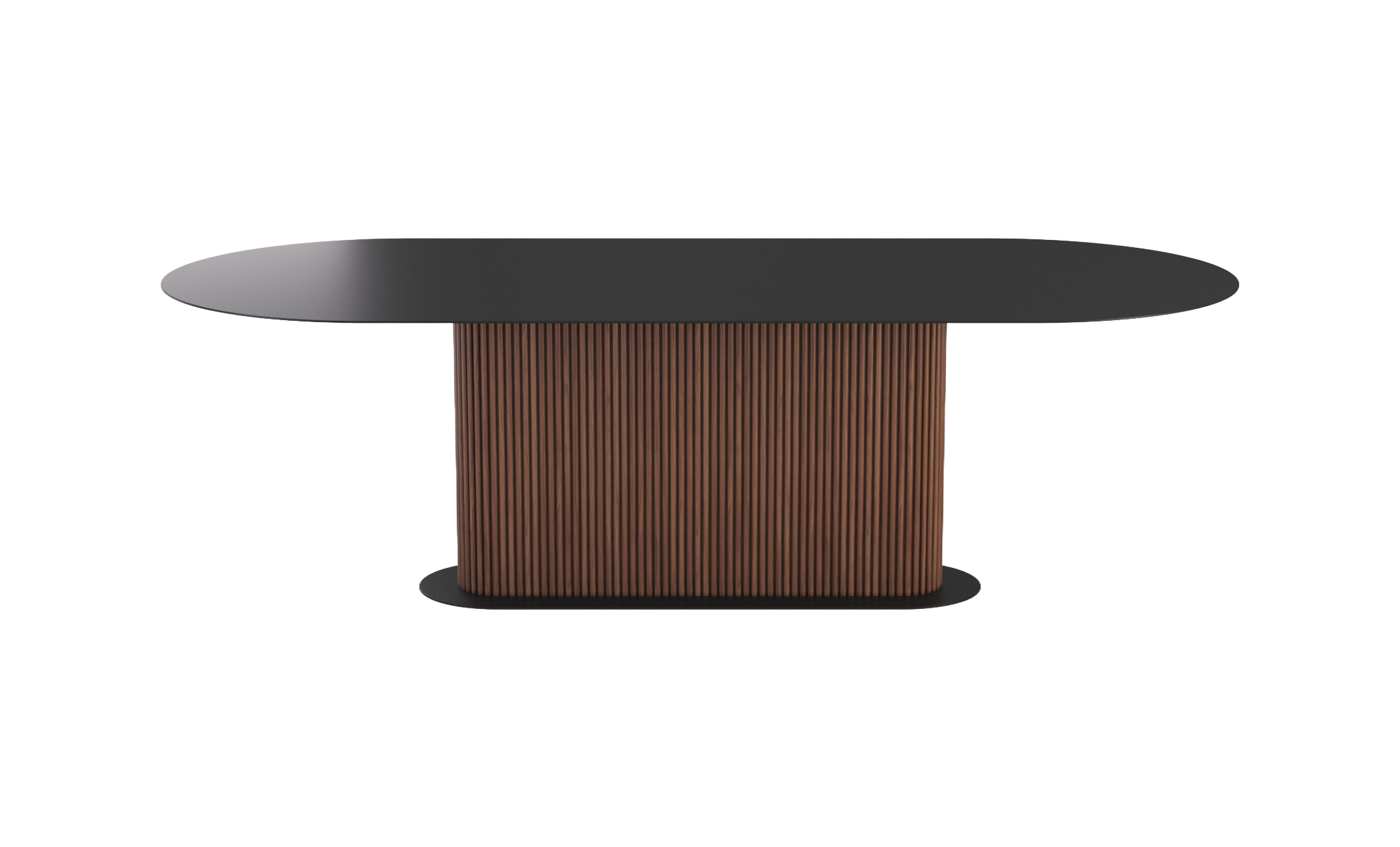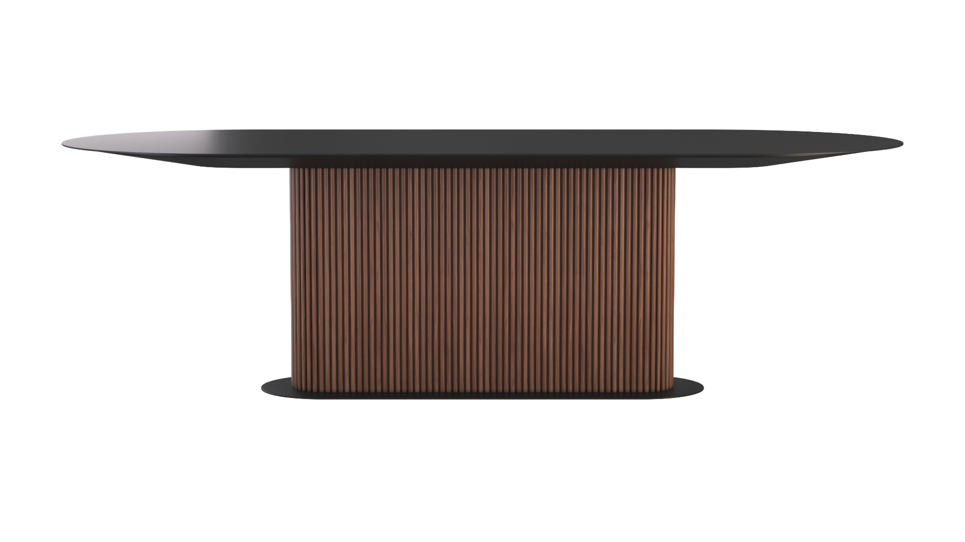 Bring classic styles into the modern age with the Fortuna Dining Table. This dining table features a spacious, black oblong top with ample room for the whole family. It has a textured wooden pillar supporting it, which rests on a matching, smaller black oblong base.