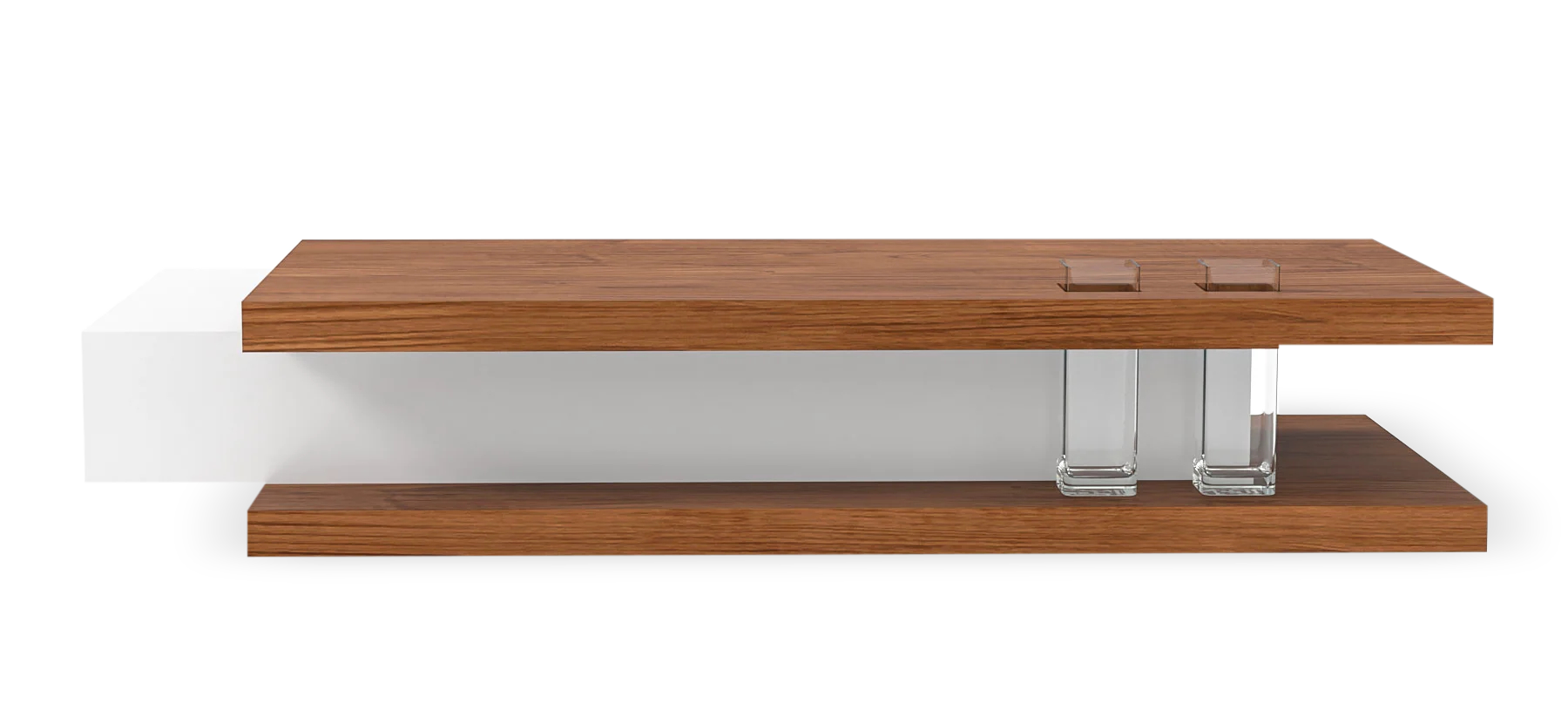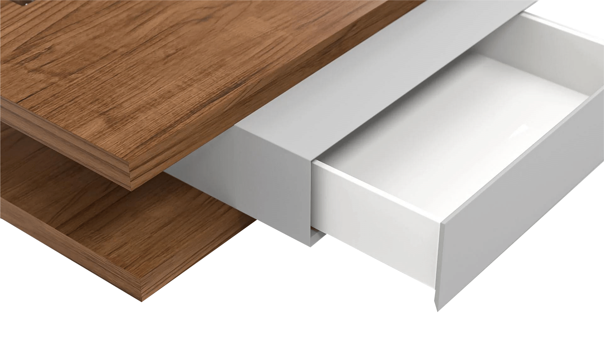 impress your guests with a coffee table that is as artistic as it is functional with the Rosewood Coffee Table that features a sleek, shining cream white center surrounded by a wooden lip. The tabletop is supported by a circular metal base that further adds to its appearance.